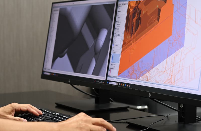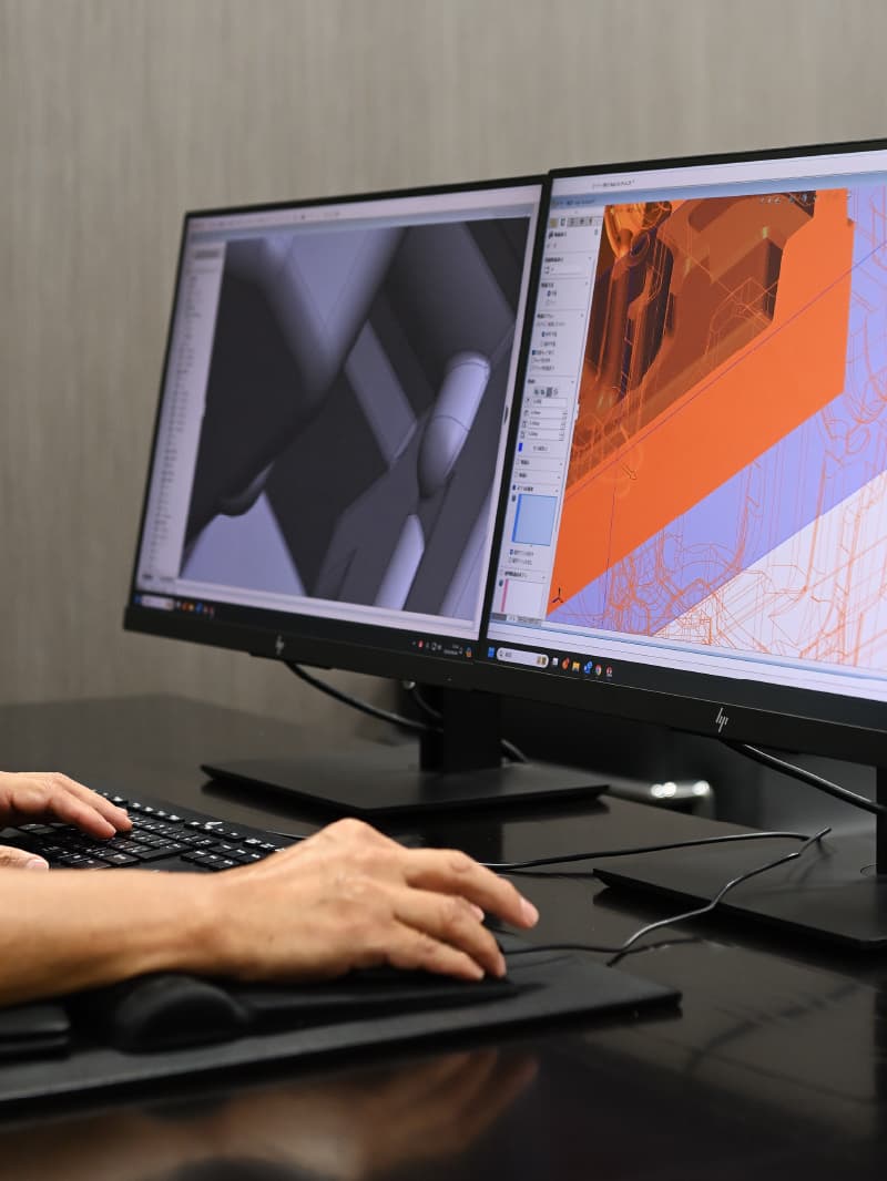 - アオノにおいて、設計は業務の中核を担う。長年にわたる経験から得た知見を駆使し、データ上で何度もシミュレーションを行った。
